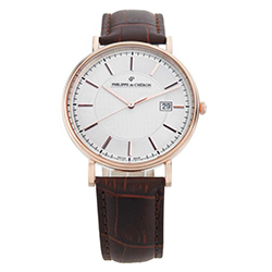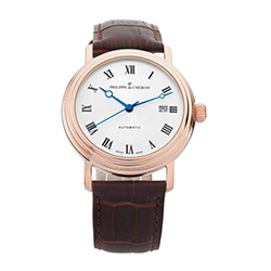 Корпусы всех часов «Philippe de Cheron» выполнены из 14-каратного цельного золота. Их вес (в мужских моделях 18-35 грамм, а в женских – 40 грамм, вместе с браслетом) подобран так, что позволяет установить оптимальную цену при сохранении всех преимуществ подлинного благородного металла. Точное следование канонам швейцарского качества отражено в отборе механизмов. А производственно-географическая принадлежность часов, обозначенная маркировкой «Swiss Made» в нижней части циферблата, свидетельствует о швейцарской сборке.
