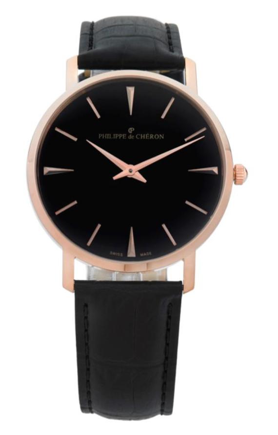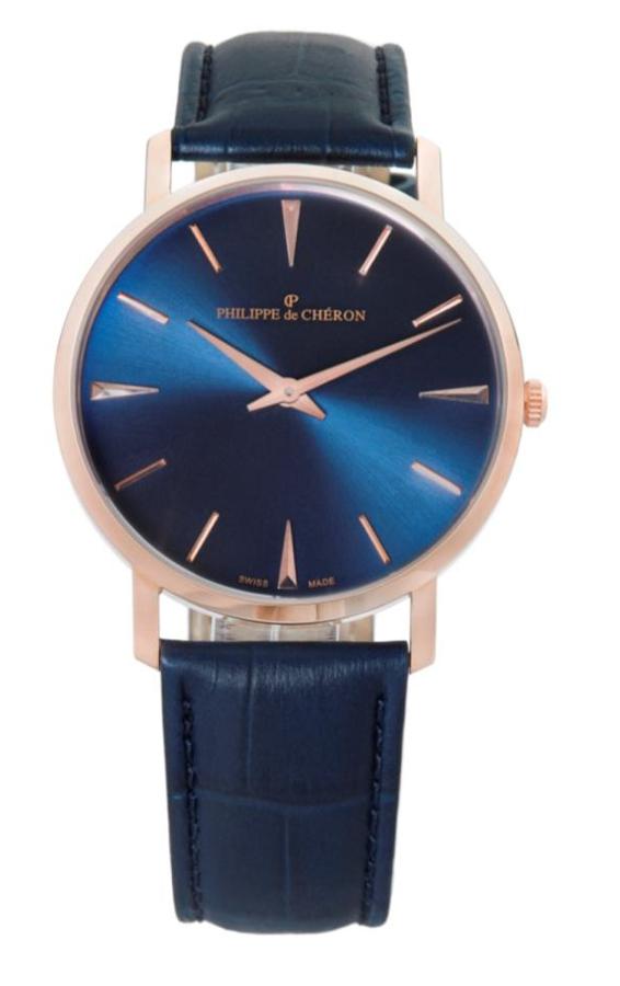 Часы «Philippe de Cheron» – это, прежде всего, аутентичный швейцарский продукт, «Swiss made». Часы изготавливаются на одной из мануфактур в швейцарском городе Тенникен (Tenniken), оснащаются автоматическими и кварцевыми механизмами швейцарского производства «ETA» и «Ronda», имеют классический швейцарский дизайн и два года международной гарантии. Кроме того, Philippe de Cheron – это «Gold Watches» – часы исключительно в золотых корпусах (что нашло отражение в логотипе марки), а в женских сериях ещё и с золотыми браслетами и бриллиантами.