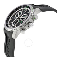 Функции: Индикация часов, минут при помощи центральных стрелок. Окошко даты на "6 часов". Хронограф. Счётчик 12 -ти часов расположен в положении " 10 часов", 30-минутный счётчик на " 2 часа", малая секундная стрелка на "6 часов".