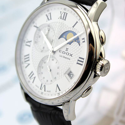 Функции: Центральные часовая и минутная стрелки. Секундная стрелка вынесена в отдельный регистр. Отдельное окошко даты. Лунный календарь. Хронограф.