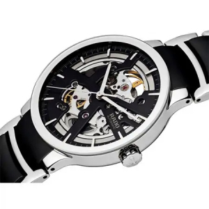 Корпус: Нержавеющая сталь. Крышка корпуса из прозрачного сапфира. Диаметр 38 мм. Водонепроницаемость 30 метров. Циферблат черный, скелетированный.