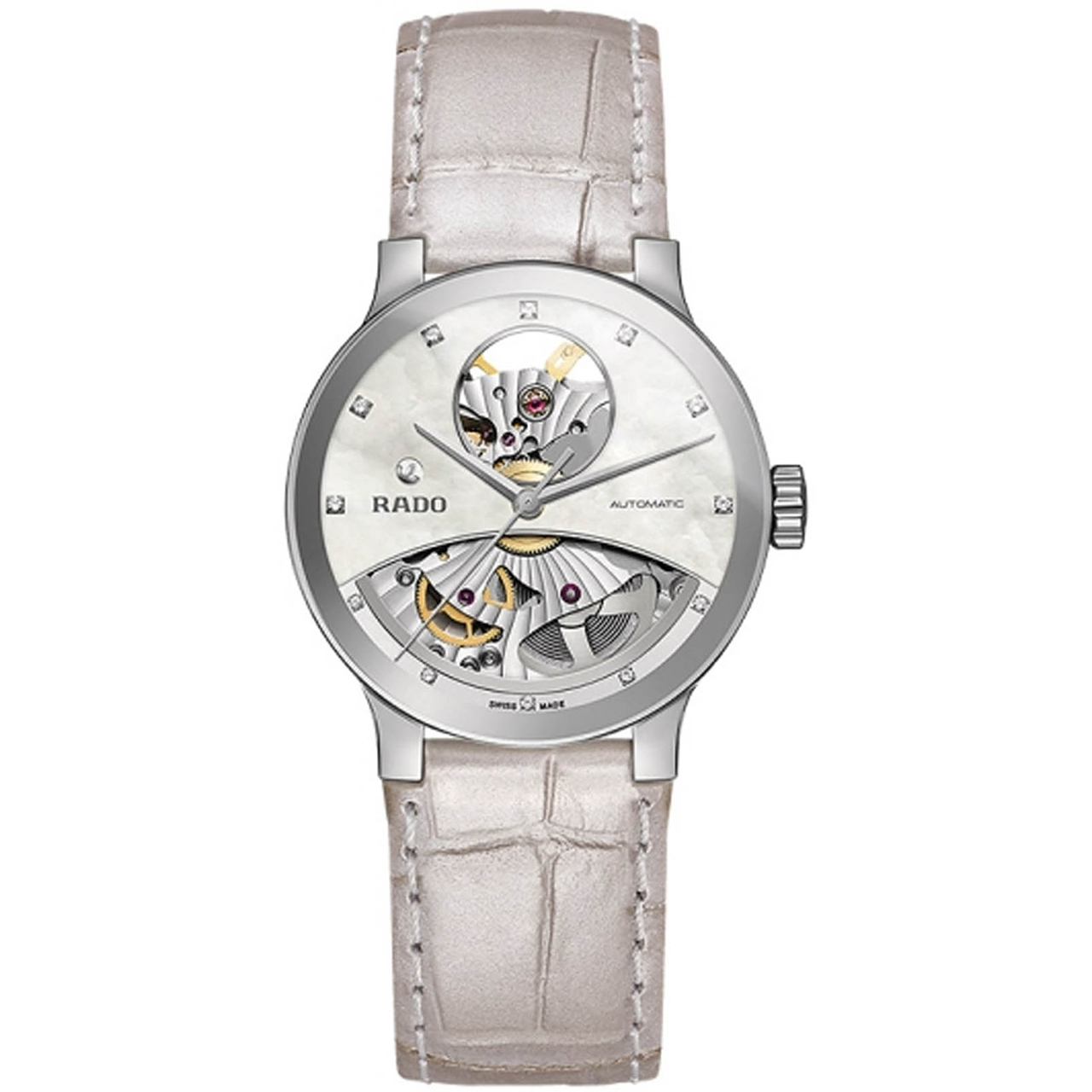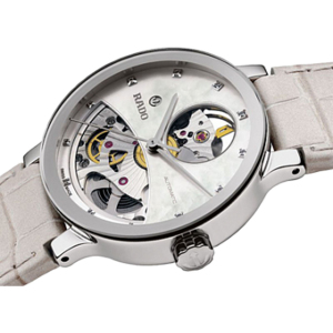 Корпус: Нержавеющая сталь. Крышка корпуса из прозрачного сапфира. Диаметр 33 мм. Водонепроницаемость 30 метров. Циферблат перламутровый, скелетированный. 7 diamonds, 0,027carat, 5 diamonds, 0,010carat.