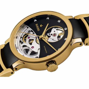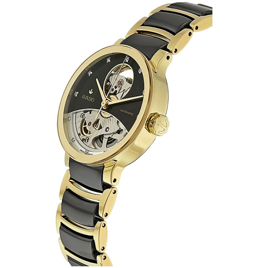 Корпус: Нержавеющая сталь/вакуумное напыление. Крышка корпуса из прозрачного сапфира. Диаметр 33мм. Водонепроницаемость 30 метров. Циферблат черный, скелетированный. 7 diamonds, 0,027 carat, 5 diamonds, 0,010 carat.