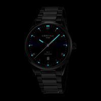 Корпус: Корпус из полированной/матовой нержавеющей стали. Циферблат с матовой шлифовкой в стиле «солнечные лучи», аппликация часовых индексов. Стрелки и индексы с покрытием Super-LumiNova. Сапфировое стекло. Диаметр 40 мм. Водостойкость 100 м. Система DS.