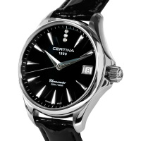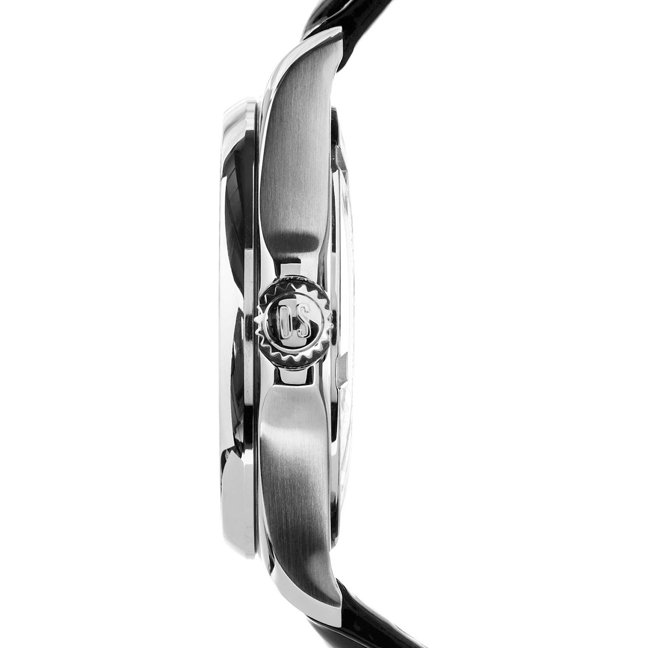 Корпус: Корпус из нержавеющей полированной/матовой стали. Чёрный циферблат украшен узором "гильоше", три бриллианта на "12 часов". Стрелки и риски серебристого цвета. Сапфировое стекло. Диаметр 34 мм. Водостойкость 200 м. Система DS.