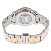 Корпус: Корпус из нержавеющей полированной/матовой стали с частичным PVD - покрытием из розового золота. Светлый циферблат с золотистыми стрелками и рисками. Сапфировое стекло с антибликовым покрытием. Диаметр 33 мм. Водостойкость 100 м. Система DS.