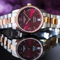 Корпус: Корпус из полированной/матовой нержавеющей стали с PVD - покрытием золотом. Фиолетовый циферблат с золотистыми стрелками и часовыми индексами. Сапфировое стекло. Диаметр 33 мм. Водостойкость 100 м. Система DS.
