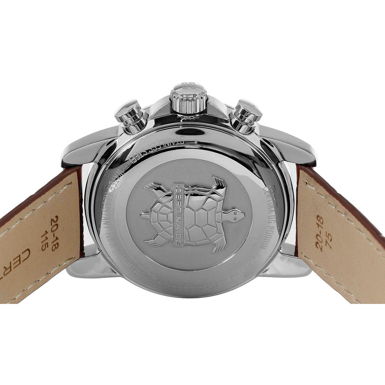 Функции: Центральные часовая и минутная стрелки, маленькая секундная стрелка на «6 часов». Апертура даты на «4 часа». Хронограф: центральная секундная стрелка, 30-минутный и 1/10-секундный индикаторы на «9» и «3 часах» соответственно. Тахиметр.