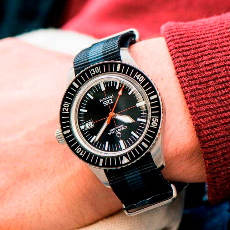 Корпус: Корпус из нержавеющей полированной/матовой стали. Черный циферблат. Люминесцентное покрытие часовой и минутной стрелок. Хезалитовое стекло с устойчивым к царапинам покрытием. Диаметр 42,8 мм. Водостойкость 200 м. Система DS.