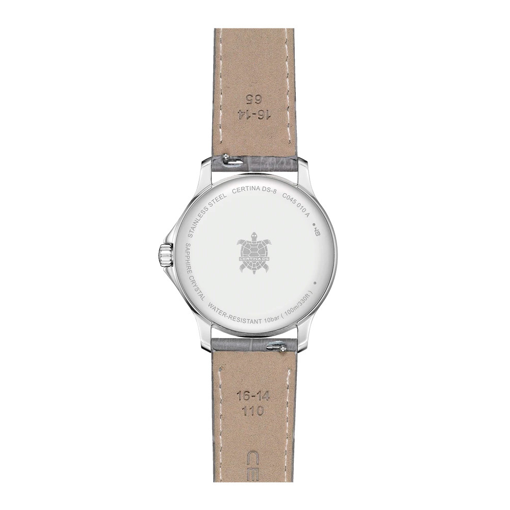 Ремешок: Удобный кожаный ремешок серого цвета с классической застежкой.