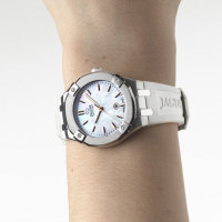 Ремешок: Часы оснащены белым каучуковым ремешком и классической застежкой-пряжкой, белого цвета.