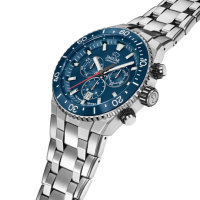 Корпус: Часы изготовлены из нержавеющей стали 316L, поверхности с матовой шлифовкой сатинированием и глянцевой полировкой. Этот тип стали, благодаря своему составу, особенно устойчив к коррозии, отличается высокой прочностью и устойчивостью к царапинам. Кроме того, благодаря добавлению керамики синего цвета в безель часы будут практически устойчивы к царапинам и будут иметь меньший вес. Этот материал придает часам очень элегантную и техничную отделку. Циферблат синего цвета, стальные часовые индексы и стрелки с люминесцентным покрытием Super-LumiNova, обеспечивают идеальную читаемость. Сапфировое стекло с антибликовым покрытием, предотвращающее появление неприятных отражений, которые мешают правильному считыванию циферблата при определенных условиях освещения. Диаметр: 44,8 мм. Водонепроницаемость: 100 м.