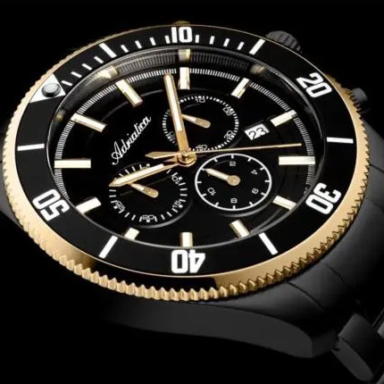 Корпус: Круглый корпус выполнен из полированной нержавеющей стали с частичным PVD покрытием. Чёрный циферблат. Накладные часовые индексы выполнены из стали. Стрелки с покрытием SuperLuminova, которое обеспечивает подсветку в темное время суток. Сапфировое стекло. Диаметр корпуса составляет 48 мм, толщина 12 мм. Водостойкость WR 50 (мытье рук, дождь).