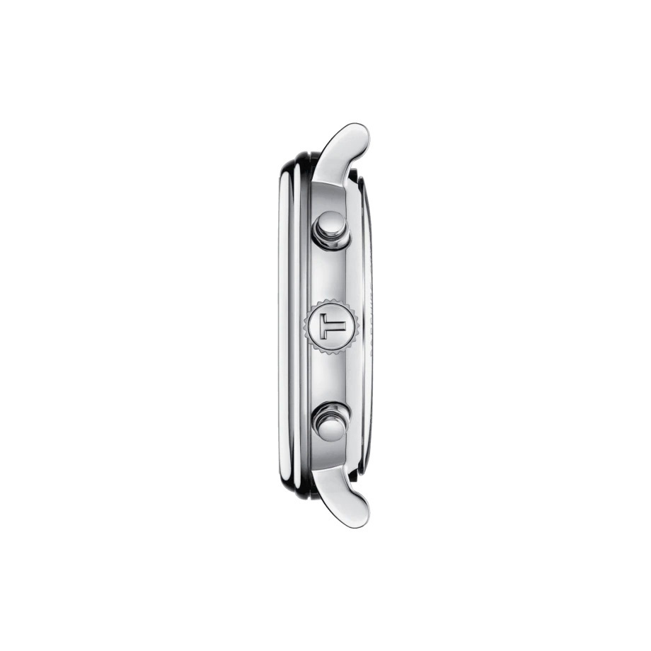 Функции: Индикация часов и минут при помощи центральных стрелок. Хронограф. Окошко даты находится в положении между часовыми отметками 4 и 5.