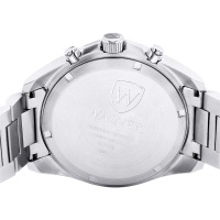 Функции: Центральные часовая и минутная стрелки, маленький секундный индикатор на «3 часах». Апертура даты находится в положении между 4 и 5 часами. Хронограф с центральной секундной стрелкой.