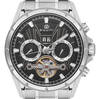 Корпус: Стильные мужские часы с частично скелетонизированным циферблатом. Корпус изготовлен из нержавеющей. Циферблат чёрного цвета. Часовые индексы и стрелки с люминесцентным покрытием. Прочное минеральное стекло обеспечит защиту часов от повреждений. Прочная задняя крышка. Завинчивающаяся заводная головка. Диаметр: 43 мм. Водонепроницаемость: 50 м.