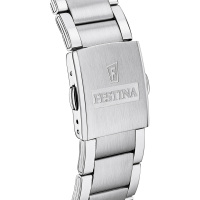 Ремешок: Надежный стальной браслет с раскладывающейся застежкой, которая украшена фирменным логотипом Festina.