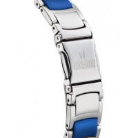 Ремешок: Стальной браслет с синими керамическими вставками. Застежка украшена фирменным логотипом Festina, на кнопочной фиксации.