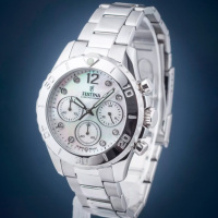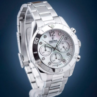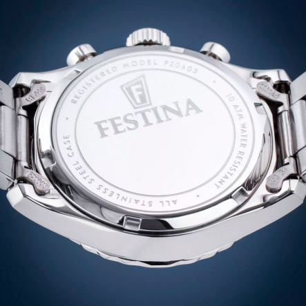 Ремешок: Надежный стальной браслет с раскладывающейся застежкой, которая украшена фирменным логотипом Festina.