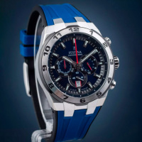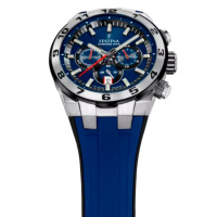 Корпус: Ударопрочный корпус часов сделан из нержавеющей стали. Безель с метками в виде арабских цифр. Циферблат выполнен по технологии Sunray (солнечные лучи) и украшен фирменным логотипом Festina Chrono Bike. Метки в виде штрихов. Рифленая заводная головка с защитой. Диаметр: 44,5 мм. Водонепроницаемость: 100 м.