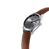Корпус: Корпус круглой формы выполнен из нержавеющей стали марки 316L, поверхности с финишной полировкой. Циферблат серого цвета с шлифовкой в стиле "солнечные лучи". Аппликация часовых индексов и стрелки с покрытием цвета родия. Сапфировое стекло имеет повышенную устойчивость к возникновению царапин. Диаметр корпуса модели составляет - 40 мм, толщина - 8,61 мм. Водостойкость - 50 метров (5 АТМ)