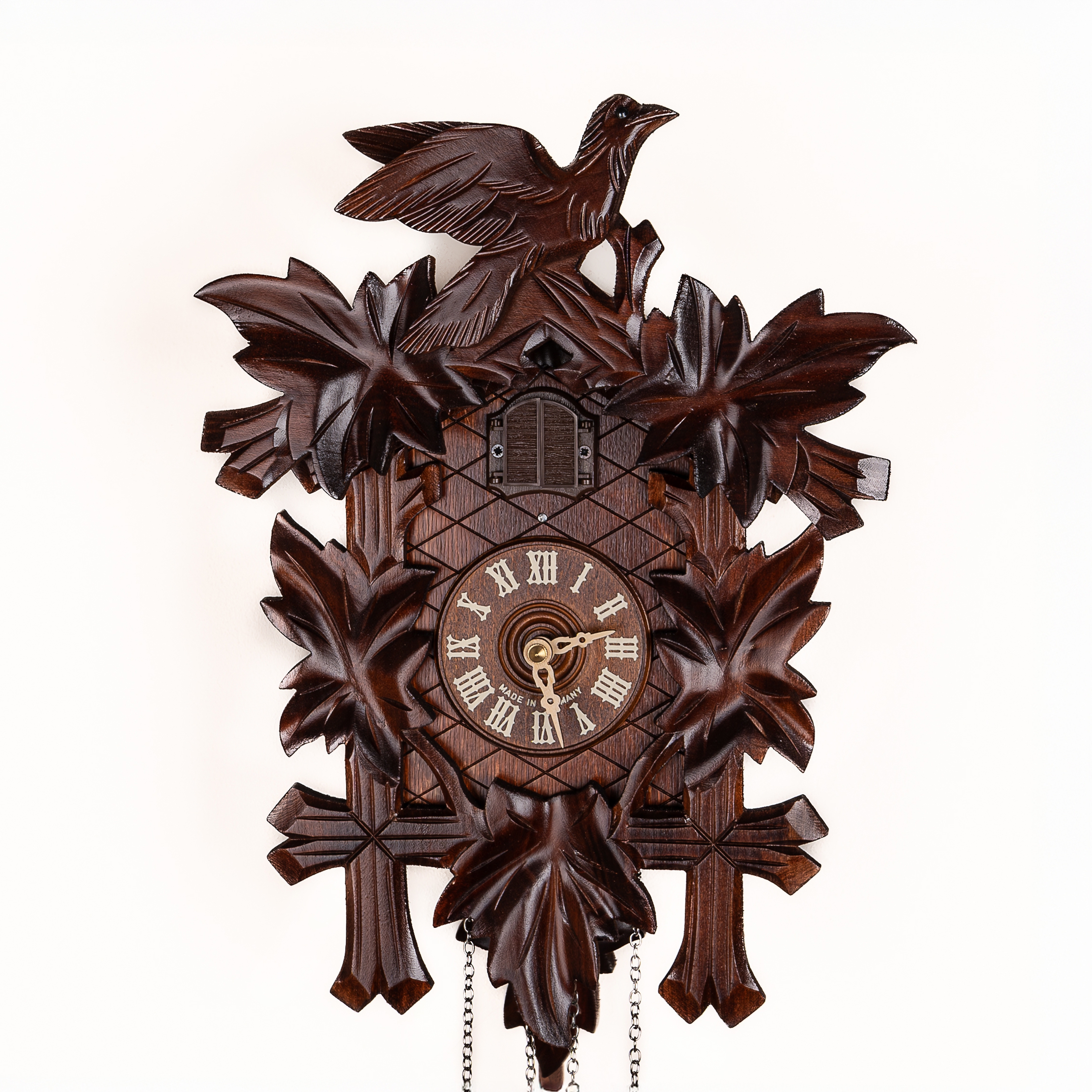 Механизм: Кварцевый. Ручное полное и автоматическое ночное отключение. Кукушка кукует каждые полчаса и полный час.