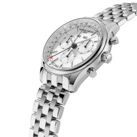 Корпус: Круглый корпус из высококачественной стали, поверхности с финишной полировкой. Серебристый циферблат с матовой шлифовкой, часовые индексы, выполненные методом аппликации, и стрелки-”листок” с напылением родия, отполированные вручную. Сапфировое стекло имеет повышенную устойчивость к возникновению царапин. Диаметр корпуса составляет 40 мм, толщина - 10,56 мм. Переводная коронка украшена гравировкой с эмблемой марки, а кнопки хронографа с насечкой в стиле "парижские гвози". Задняя крышка с резьбовым соединением с корпусом. Водостойкость 30 метров (3 АТМ).