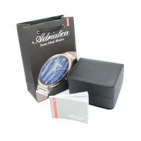 Корпус: Круглый корпус выполнен из полированной нержавеющей стали. Синий циферблат с узором гильоше, украшен 4 кристаллами. Накладные часовые индексы выполнены из стали. Стрелки с покрытием SuperLuminova, которое обеспечивает подсветку в темное время суток. Минеральное стекло. Диаметр корпуса составляет 35 мм, толщина 8 мм. Водостойкость WR 30 (мытье рук, дождь).