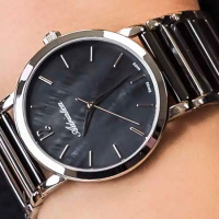 Корпус: Круглый корпус выполнен из полированной нержавеющей стали. Метки в виде штрихов на перламутровом циферблате чёрного цвета. Сапфировое стекло устойчивое к появлению царапин, обладающее высокой прозрачностью. Диаметр корпуса составляет 36 мм, толщина 7 мм. Водостойкость WR 30 (мытье рук, дождь).
