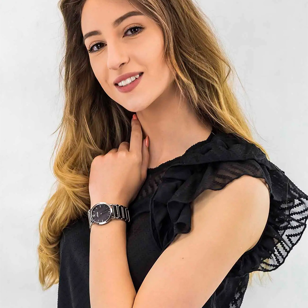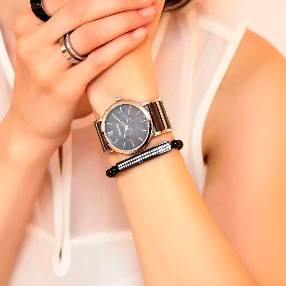 Ремешок: Браслет выполнен из нержавеющей стали с керамическими вставками чёрного цвета.