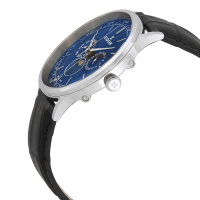 Функции: Центральные часовая и минутная стрелки. Отдельные окошки даты и дня недели. Номер недели и месяц отображаются центральной стрелкой. Лунный календарь.