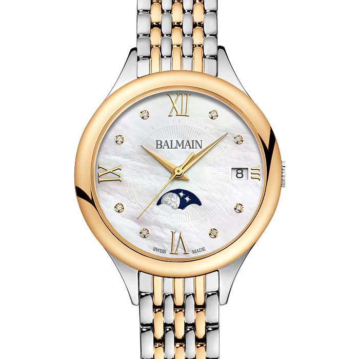 Корпус: Нержавеющая сталь с PVD-покрытие золотом розового цвета, сапфировое стекло. Циферблат перламутровый, декорирован камнями. Диаметр 31 мм. Водонепроницаемость 50 метров.