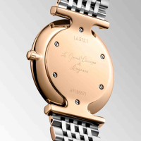 Корпус: Нержавеющая сталь + PVD-покрытие из розового золота, сапфировое стекло, 12 бриллиантов на циферблате. Размер 29 мм, водонепроницаемость 30 метров. Циферблат – перламутровый белый.