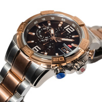Ремешок: Браслет выполнен из нержавеющей стали с частичным IP(ионное) покрытием. Браслетная раскладывающаяся застежка с гравировкой логотипа. Каждые часы бренда Chronoforce имеют уникальную упаковку, в виде мотоциклетного шлема.