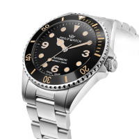 Корпус: Корпус выполнен из высококачественной стали с повышенной устойчивостью к коррозии, поверхности с матовой шлифовкой – сатинированием и полировкой до зеркального блеска. Однонаправленный керамический безель вращается со щелчками в направлении против хода стрелок. Циферблат черного цвета. Люминесцентный состав на стрелках и на разметке циферблата. Сапфировое стекло, это лучшее стекло для наручных часов, которое не царапается при механическом воздействии, его можно повредить только алмазом. Диаметр корпуса: 42 мм. Водозащита до 200 метров позволит плавать, нырять и погружаться под воду с аквалангом.