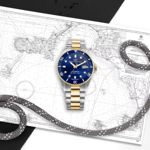 Корпус: Корпус выполнен из высококачественной стали с повышенной устойчивостью к коррозии, поверхности с матовой шлифовкой – сатинированием и полировкой до зеркального блеска с частичным PVD покрытием. Однонаправленный безель вращается со щелчками в направлении против хода стрелок. Циферблат синего цвета. Люминесцентный состав на стрелках и на разметке циферблата. Сапфировое стекло, это лучшее стекло для наручных часов, которое не царапается при механическом воздействии. Диаметр корпуса: 42 мм. Водозащита до 300 метров позволит плавать, нырять и погружаться под воду с аквалангом.