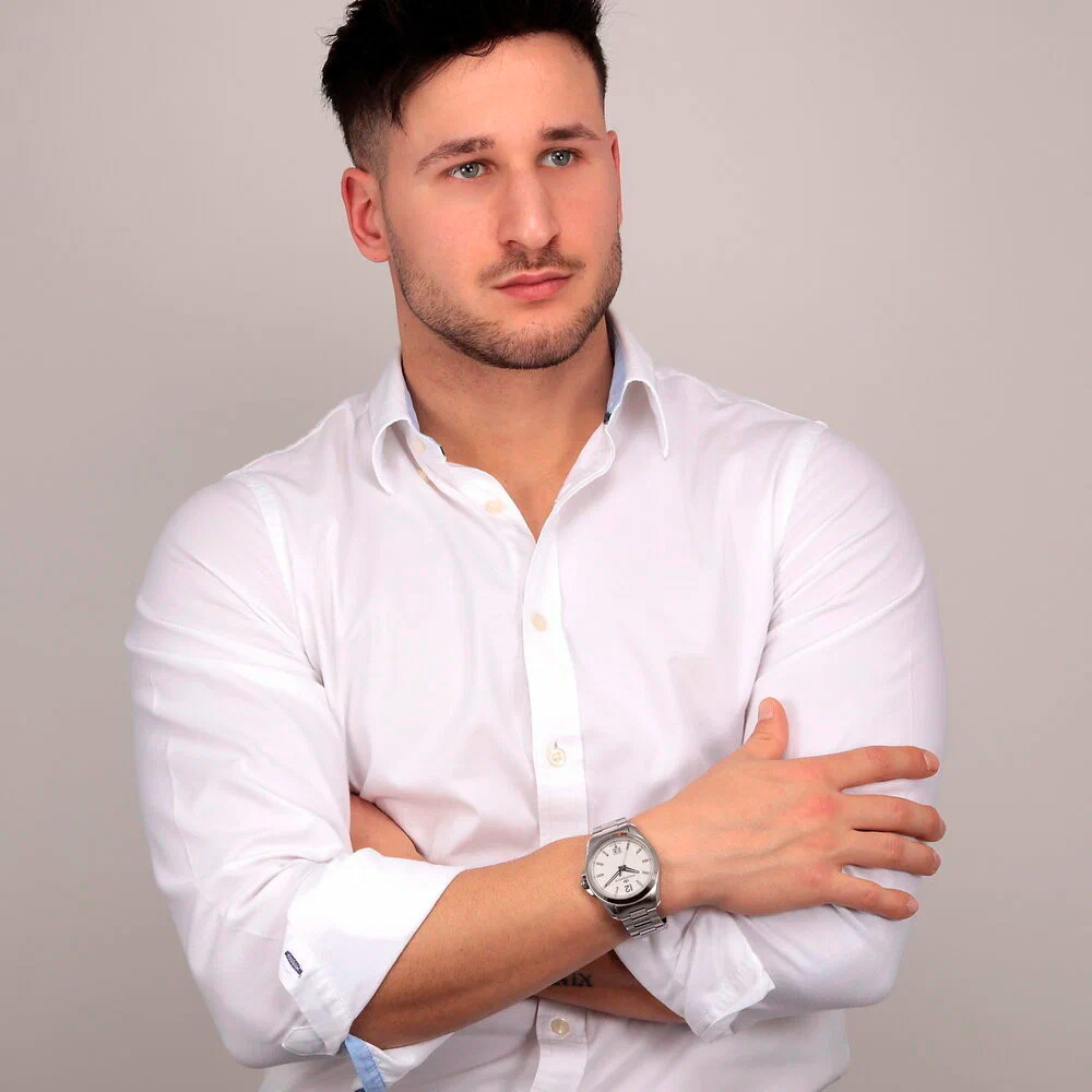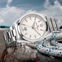 Корпус: Корпус выполнен из высококачественной стали с повышенной устойчивостью к коррозии, поверхности с матовой шлифовкой – сатинированием и полировкой до зеркального блеска. Циферблат белого цвета. Люминесцентный состав на стрелках и на разметке циферблата. Сапфировое стекло, это лучшее стекло для наручных часов, которое не царапается при механическом воздействии, его можно повредить только алмазом. Диаметр корпуса: 43 мм. Водозащита до 100 метров позволит плавать.