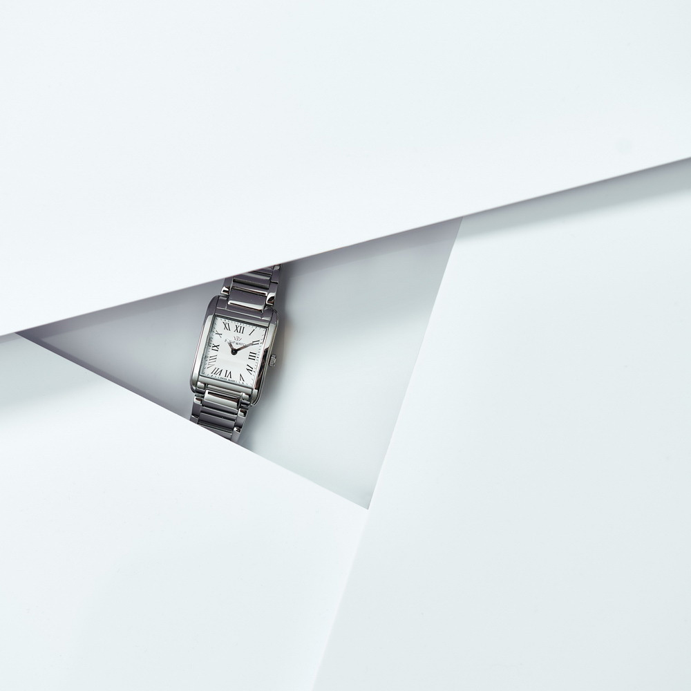 Корпус: Корпус выполнен из высококачественной стали с повышенной устойчивостью к коррозии, поверхности с полировкой до зеркального блеска. Белый циферблат. Римские чёрные цифры и стальные стрелки. Сапфировое стекло имеет повышенную устойчивость к возникновению царапин. Размер корпуса: 24,7x34,1 мм. Водозащита до 30 метров.