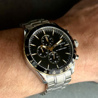 Корпус: Корпус выполнен из высококачественной стали с повышенной устойчивостью к коррозии, поверхности с матовой шлифовкой – сатинированием и полировкой до зеркального блеска с частичным PVD покрытием. Циферблат чёрного цвета. Накладные позолоченные часовые индексы и стрелки с люминесцентный составом. Сапфировое стекло, это лучшее стекло для наручных часов, которое не царапается при механическом воздействии, его можно повредить только алмазом. Диаметр корпуса: 44 мм. Водозащита до 100 метров.