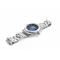 Корпус: Нержавеющая сталь, вращающийся безель. Синий циферблат с волнистой текстурой . Серебристые стрелки и часовые индексы с люминесцентным покрытием. Сапфировое стекло с антибликовым покрытием. Водонепроницаемость: 200 метров. Диаметр: 43 мм.