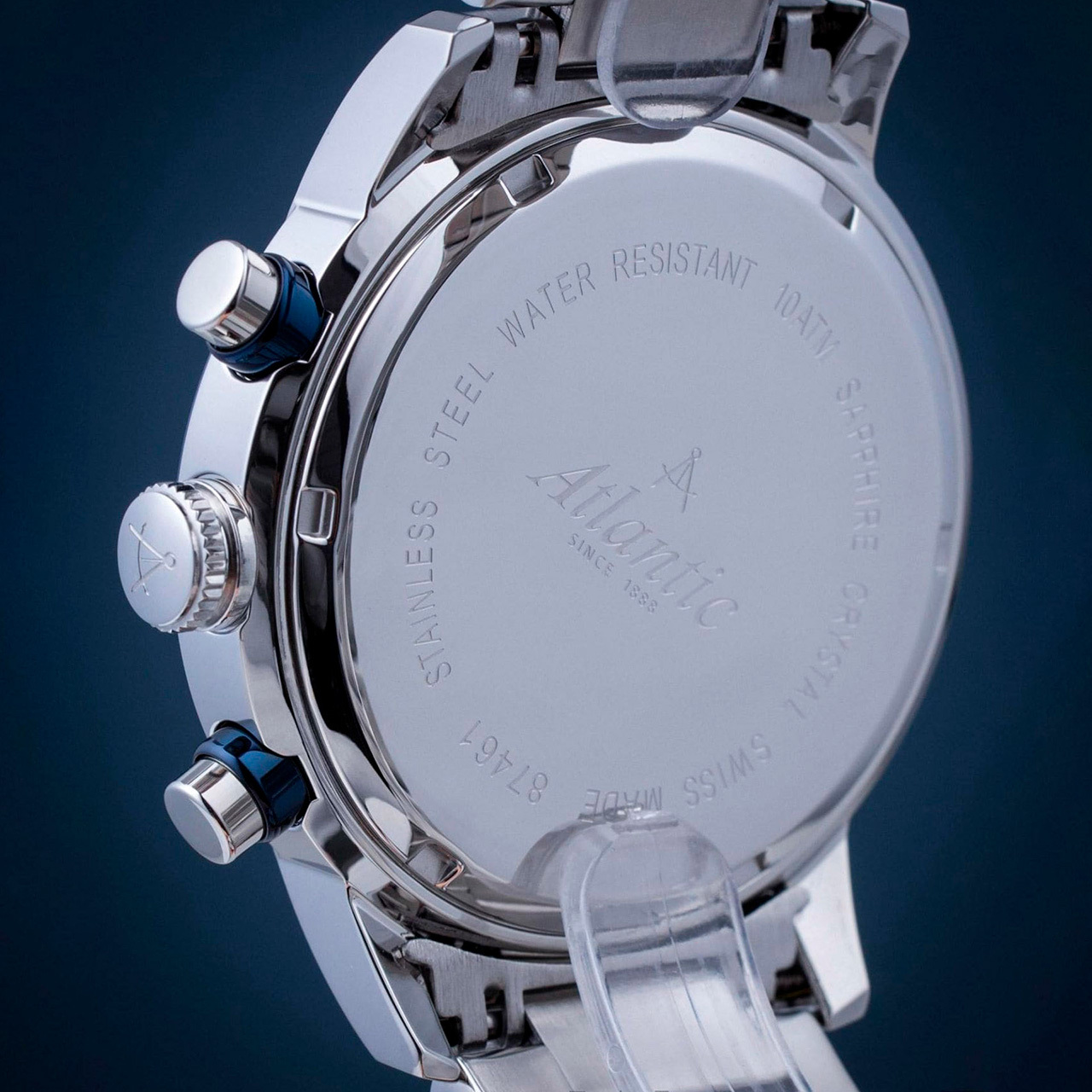Корпус: Корпус выполнен из нерж. стали 316L, поверхности с матовой шлифовкой (сатинирование) и полировкой до зеркального блеска. Циферблат синего цвета с рельефной поверхностью, аппликация часовых индексов. Светонакопительное покрытие на стрелках и разметке циферблата. Сапфировое стекло с повышенной устойчивостью к возникновению царапин. Безель - PVD-покрытие синего цвета. Диаметр корпуса составляет: 46 мм. Водостойкость: 100 метров (10 АТМ).