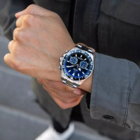Корпус: Часы изготовлены из нержавеющей стали 316L, поверхности с матовой шлифовкой сатинированием и глянцевой полировкой. Этот тип стали, благодаря своему составу, особенно устойчив к коррозии, отличается высокой прочностью и устойчивостью к царапинам. Вращающийся в одну сторону безель с PVD покрытием. Синий циферблат. Стальные часовые индексы и стрелки с люминесцентным покрытием Super-LumiNova, обеспечивают идеальную читаемость. Сапфировое стекло с антибликовым покрытием, предотвращающее появление неприятных отражений, которые мешают правильному считыванию циферблата при определенных условиях освещения. Завинчивающаяся заводная головка. Диаметр: 46 мм. Водонепроницаемость: 200 м.
