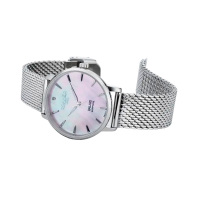 Корпус: Корпус выполнен из высококачественной нержавеющей стали 316L с полировкой и матовой шлифовкой - сатинированием. Перламутровый циферблат белого цвета, серебристые стрелки и часовые индексы. Стрелки с люминесцентным покрытием для оптимальной разборчивости в условиях низкой освещенности. Сапфировое стекло с антибликовым покрытием. Диаметр: 32 мм. Водозащита: 50 м.