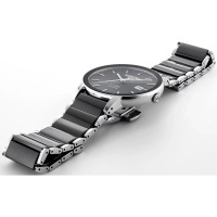 Ремешок: Часы оснащены металлическим браслетом в цвет корпуса с черными керамическими вставками. Браслетная застежка с тройным сложением – «бабочка».