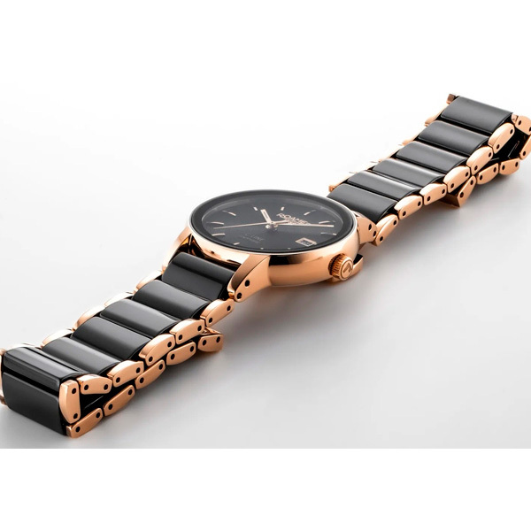 Ремешок: Часы оснащены металлическим браслетом с IP-покрытием и черными керамическими вставками. Браслетная застежка с тройным сложением – «бабочка».