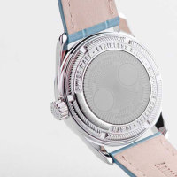 Корпус: Корпус модели выполнен из высокопрочной часовой стали. Циферблат украшает вставка из перламутра, часовая и минутная стрелки скелетонизированные, на центральную часть нанесено изящное гильоше. Метки в виде точек и арабских цифр. Сапфировое стекло используется в дорогостоящих изделиях, это лучшее стекло для наручных часов, которое не царапается при механическом воздействии, его можно повредить только алмазом. Диаметр: 34 мм. Водозащита: 100 м.