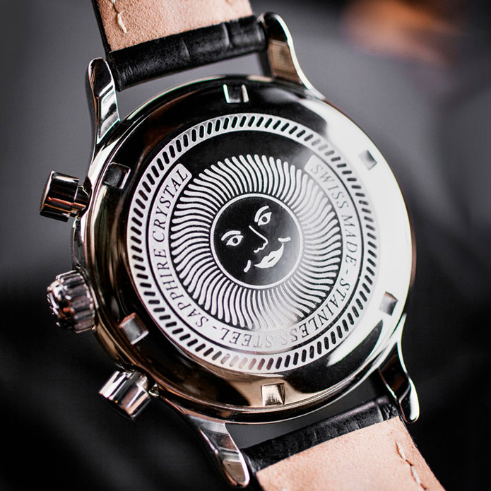 Функции: Центральные часовая и минутная стрелки. Секундная стрелка вынесена в отдельный регистр. Дата. Хронограф.