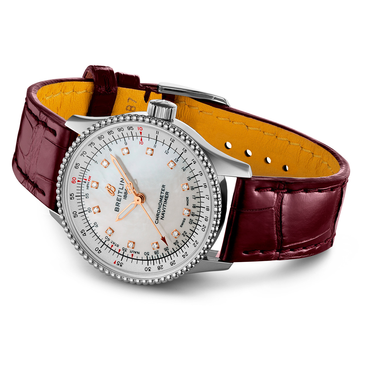 Ремешок: Ремешок бордового цвета из кожи аллигатора, ширина 18/16 мм. Браслетная застежка, раскладывающаяся при нажатии кнопок двойной блокировки, украшена эмблемой марки.