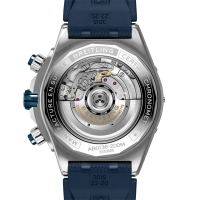 Корпус: Корпус модели выполнен из высококачественной стали. Однонаправленный керамический безель вращается со щелчками в направлении против хода стрелок. Циферблат синего цвета, дополнительные индикаторы с гильошированием в виде концентрических полос белого цвета. Сапфировое стекло имеет антибликовое покрытие с двух сторон. Заводная коронка с двойной системой уплотнителей и задняя крышка прозрачная из сапфирового стекла имеют резьбовое крепление к корпусу. Диаметр 44 мм. Водостойкость 200 метров.