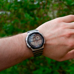 Функции: Цифровая индикация на жидкокристаллическом дисплее. Отображение часов, минут и секунд. Формат времени 12/24-часовой. Функция мирового времени. Автоматический календарь учитывает количество дней в месяцах, включая 28 в феврале. Отображение даты и дня недели и месяца. Секундомер с точностью измерений 1/100 сек., общее время измерений 24 часа. 5 будильников с повтором: ежедневный сигнал звучит в то же время каждый день, сигнал на определенную дату (например, служит напоминанием о дне рождения), ежемесячный будильник звучит в определенный день и время каждый месяц, будильник для каждого дня определенного месяца. Функция автоповтора сигнала «Snooze».